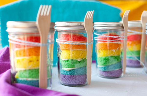 La tarta de la imagen está forrada con fondant blanco, pero si no os animáis podéis usar nata o frosting, el detalle bonito son los corazones de fondant de colores y para hacerlos sólo tenéis que estirar fondant de diferentes colores y cortar corazones con un cortante de galletas, todos del mismo tamaño. Luego los vais pegando alrededor de la tarta en fila, alternando los colores.