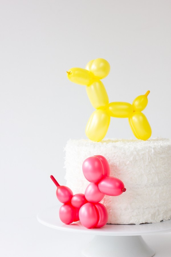 Una sencilla tarta cubierta de nata o buttercream puede convertirse en algo súper original, agregando unos globos: El clásico perrito es un adorno especial y original y muy sencillo de hacer. En Pequeocio podéis ver cómo hacer un perrito con globos.