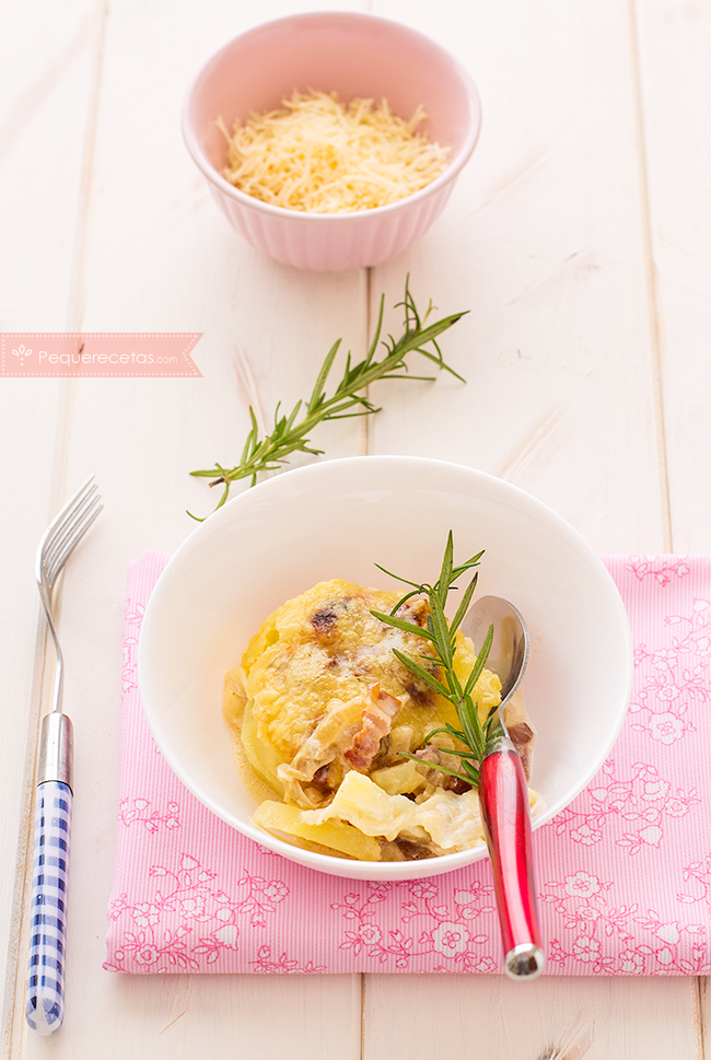 La tartiflette es una receta típica de la gastronomía francesa, entre sus ingredientes encontramos: patatas, queso, cebolla, bacon, pimienta y vino blanco. Para esta receta se suele utilizar el queso Reblochon pero si no lo encontráis, como ha sido en mi caso, podéis sustituirlo por queso Emmental.