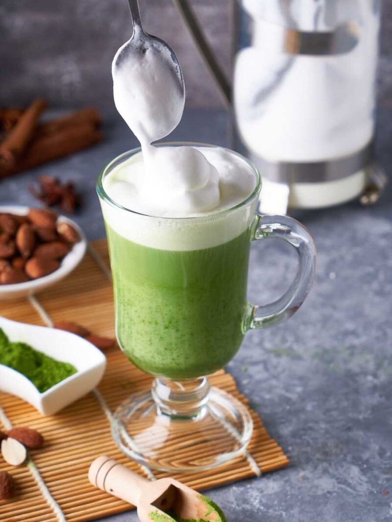 - Disfrutar: Tu té matcha con leche, en su versión vegana, está listo para disfrutar. Puedes espolvorear un poco de matcha adicional en la parte superior como decoración.