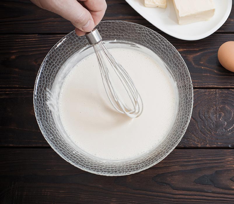 - Incorporamos la mantequilla y mezclamos con unas varillas hasta que esté bien integrada.