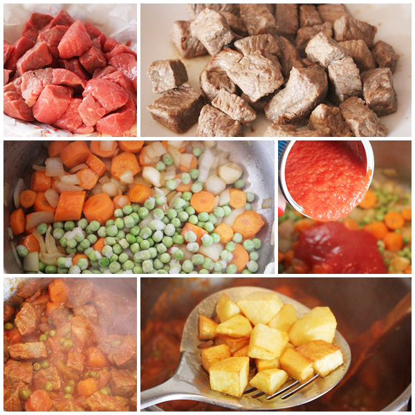 Gracias a tú receta ya me sale bien! Gracias!. Antes se me quedaba la carne durísima e incomestible. Me hace gracia lo de que, después de comprar la carne en la carnicería digas: “Ya en casa, la salpimentamos y la doramos en una cazuela…”. Si no es “en casa”, ¿¡Dónde iba a ser!?, ¿En la propia carnicería?. Jajajaja. Bueno, era una broma :). A Gingger, que pregunta lo de las patatas fritas, decirle que yo las hago al horno, las corto en trocitos y las añado después. Otra opción es, si no os gusta que se quede muy caldoso, es hacerlas en puré y añadir un buen pegote ya en el plato. Gracias de nuevo, Ana María!.