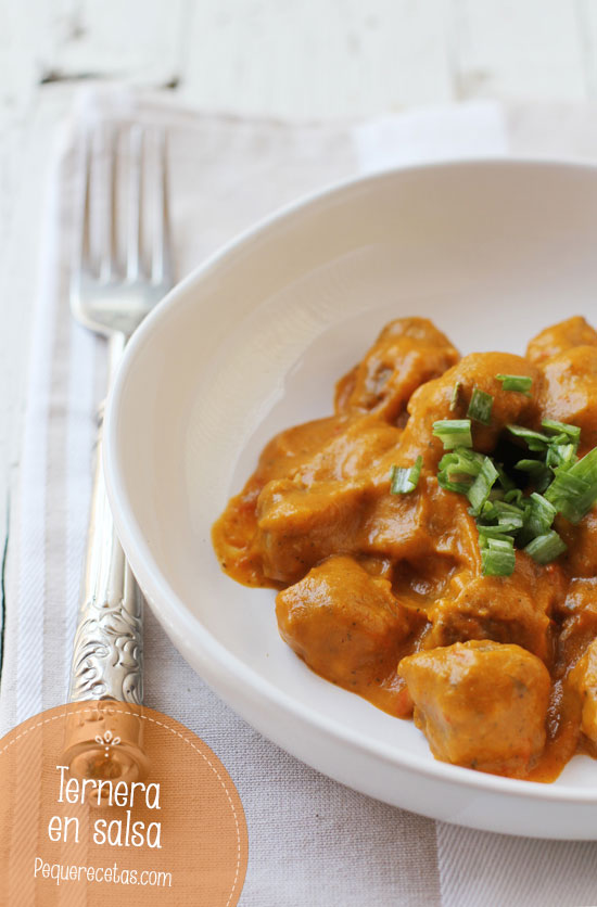 Deciros que mi hijo se lo ha comido encantado, eso sí…decía: mamá qué rica esta carne con tomate, cuando esta receta de ternera en salsa de verduras, ¡no lleva tomate!…pero el pimiento y las zanahorias le dan ese tono rojizo, él tan contento y yo tan feliz de pensar en todas las verduras que se estaba tomando.