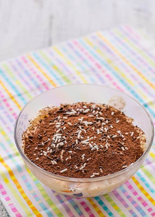 Refrigéralo al menos 4 horas, aunque si lo dejas más tiempo quedará aún mejor. Sácalo 10 minutos antes de servir y espolvorea una nueva capa de cacao para un acabado perfecto.