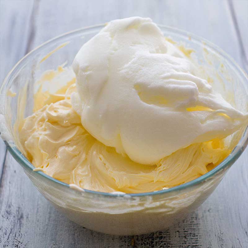 Bate bien las yemas con azúcar hasta que estén blancas y espumosas. Añade el mascarpone poco a poco y mezcla hasta que no queden grumos. Monta claras o nata bien firmes e intégralas suavemente con movimientos envolventes.