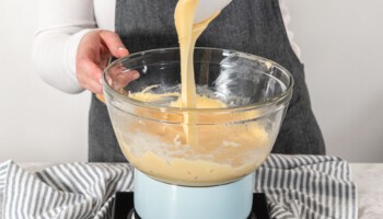 - A continuación añadimos poco a poco el almíbar que ya estará frío, mezclando a velocidad baja con unas varillas eléctricas.