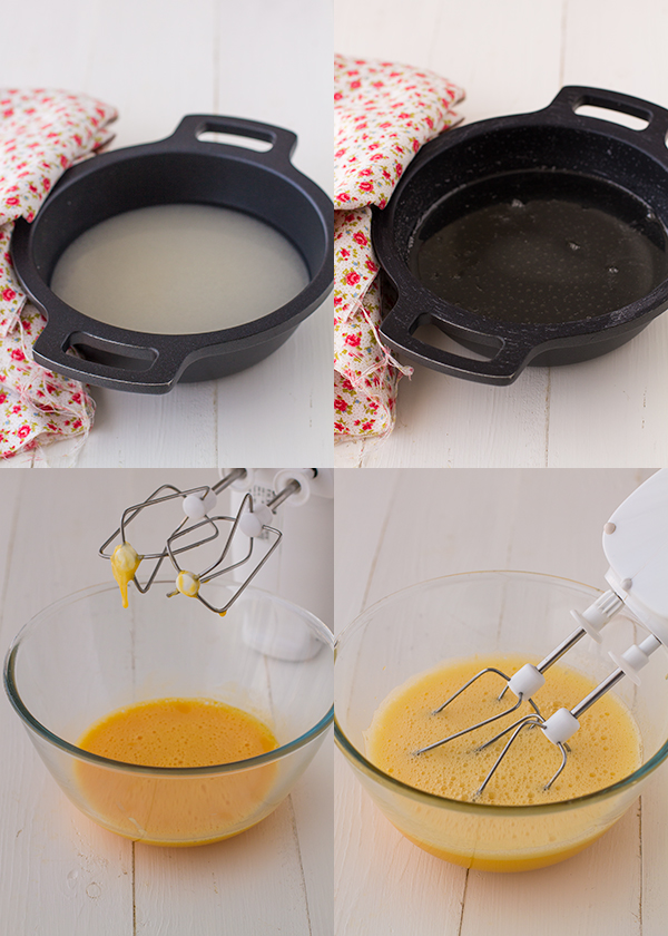 - Cocemos el tocino de cielo al baño María, 180º durante 30 minutos aproximadamente.