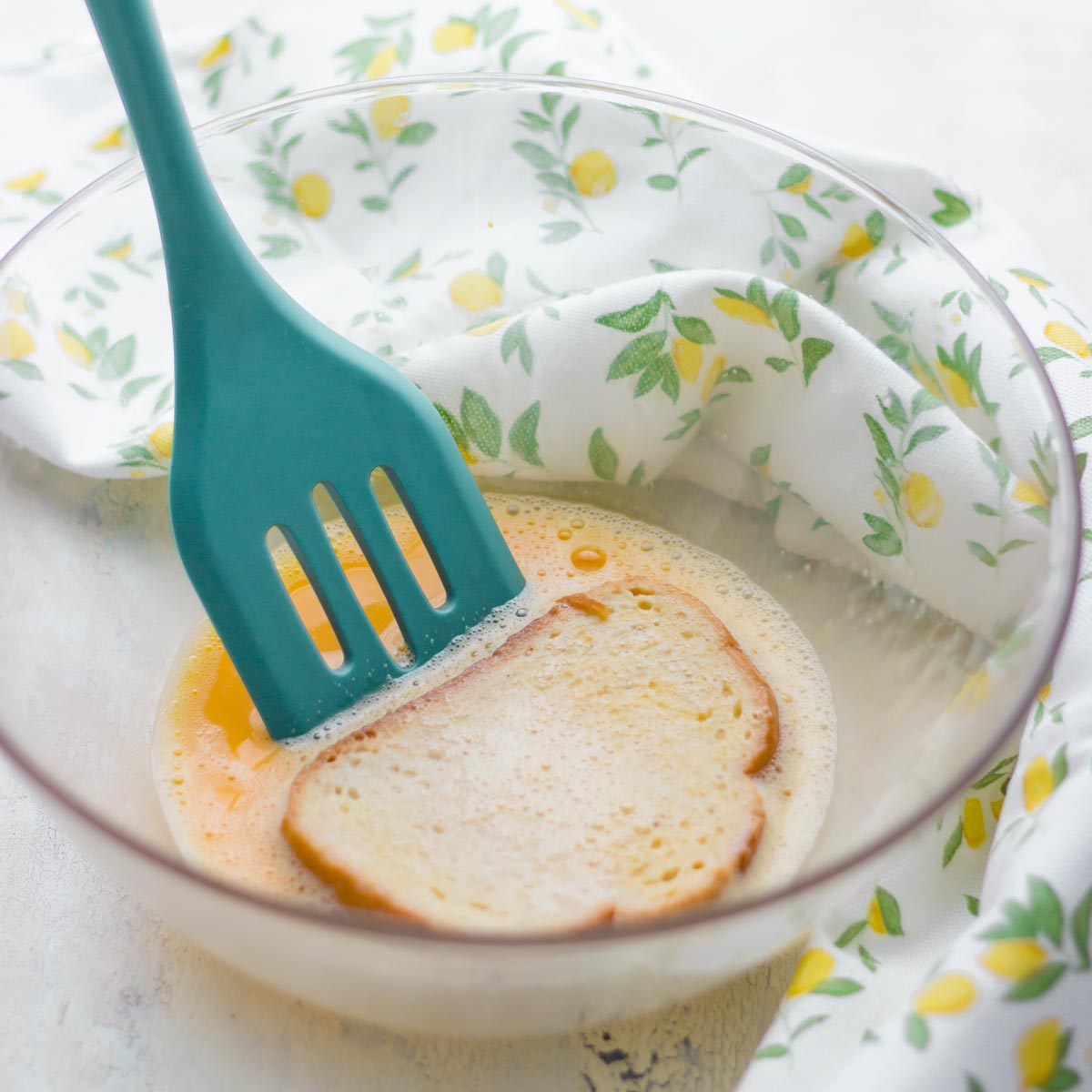 Una vez tenemos el almíbar preparado nos dispondremos a preparar las torrijas, que, como os adelantábamos arriba las vamos a preparar con freidora de aire.