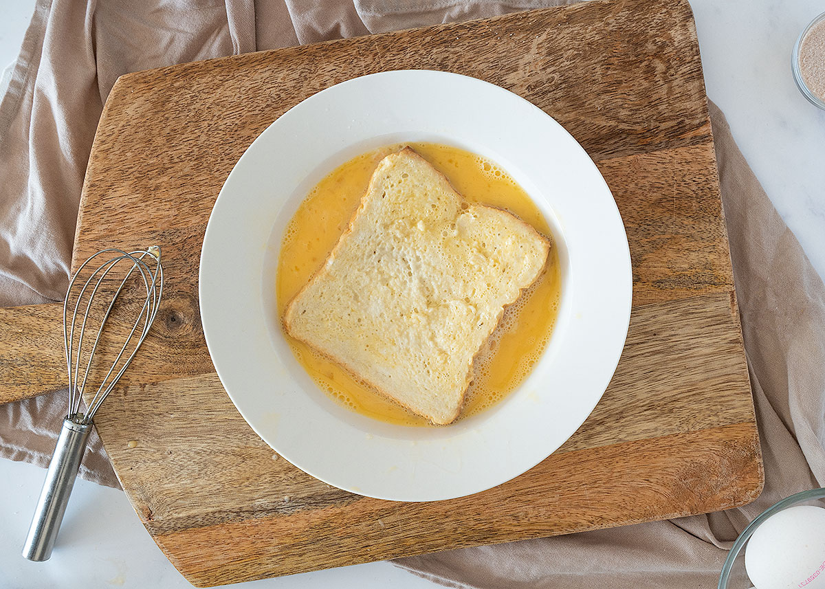 Dependiendo de la cantidad de torrijas que vayamos a hacer y de lo grande que sea la fuente, tendremos que trabajar por turnos a la hora de empapar el pan en la leche.