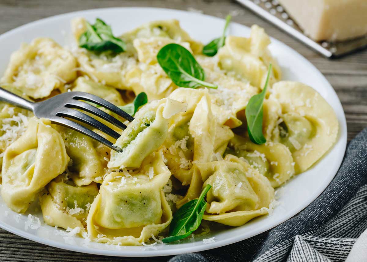 Receta de tortellini rellenos de queso ricotta y espinacas