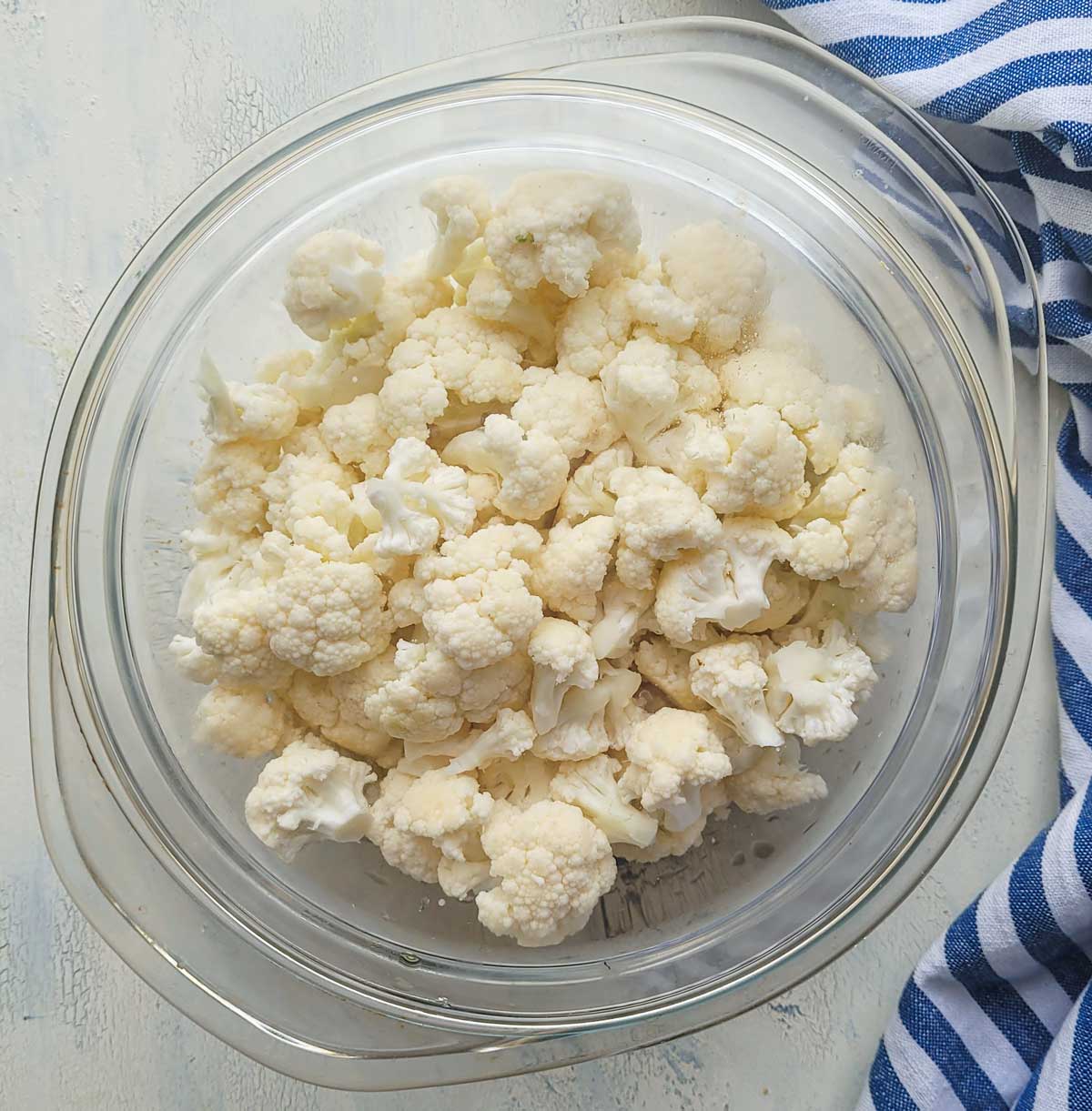 - Ponemos la coliflor en un recipiente con tapa apto para el microondas
