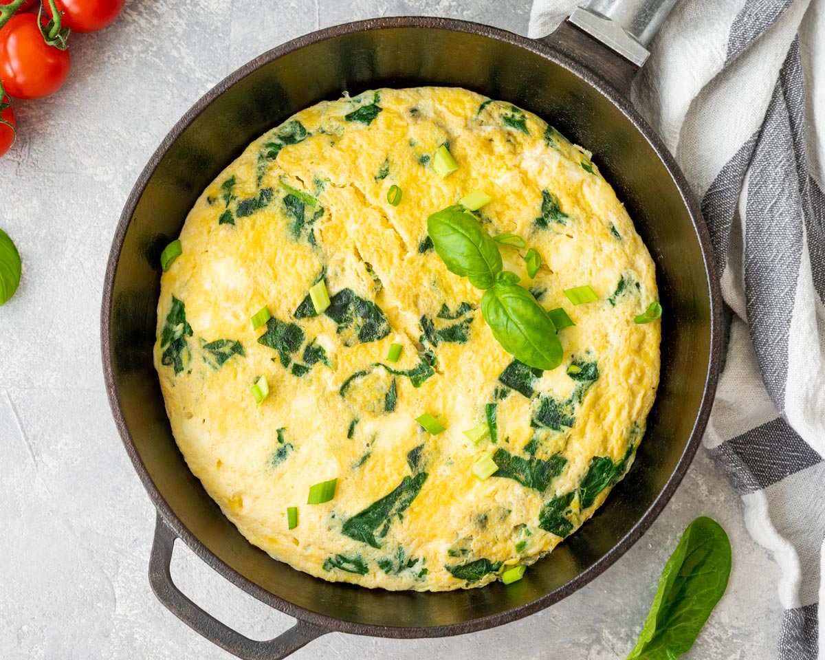 La tortilla de espinacas es una deliciosa y saludable opción, perfecta tanto como plato principal para una comida ligera, como para una cena rápida.