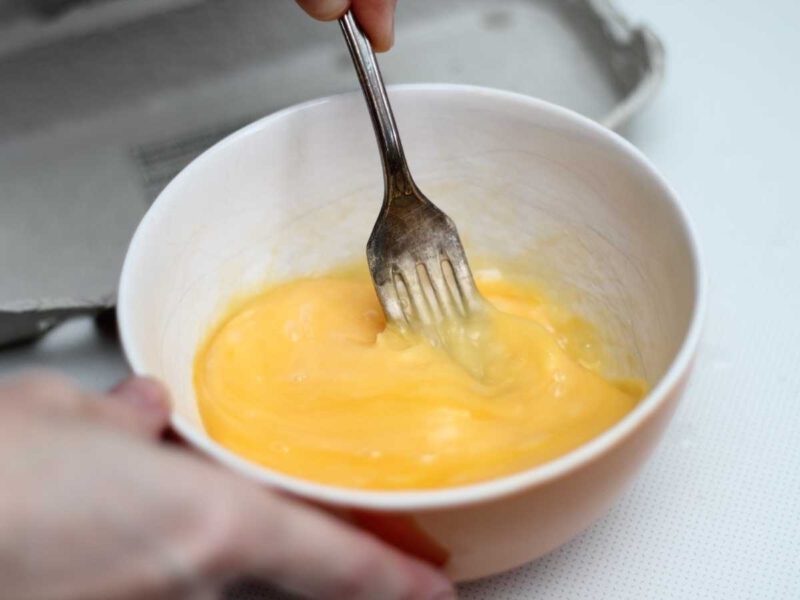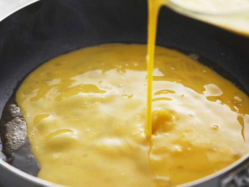 - Bate el huevo con la leche y la sal y cuaja la tortilla a la plancha sobre una sartén antiadherente.