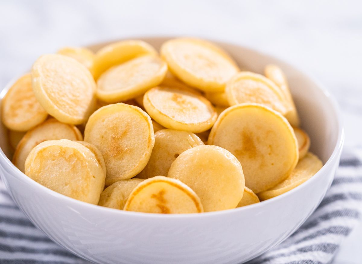Puedes utilizar una cucharada pequeña para verter porciones más pequeñas de masa en la sartén en el momento de cocinar los mini pancakes. También puedes darles forma redonda o alargada según la preferencia de tu bebé. Recuerda que es importante que las tortitas mantengan su consistencia y se cocinen adecuadamente para que sean fáciles de sostener y masticar.