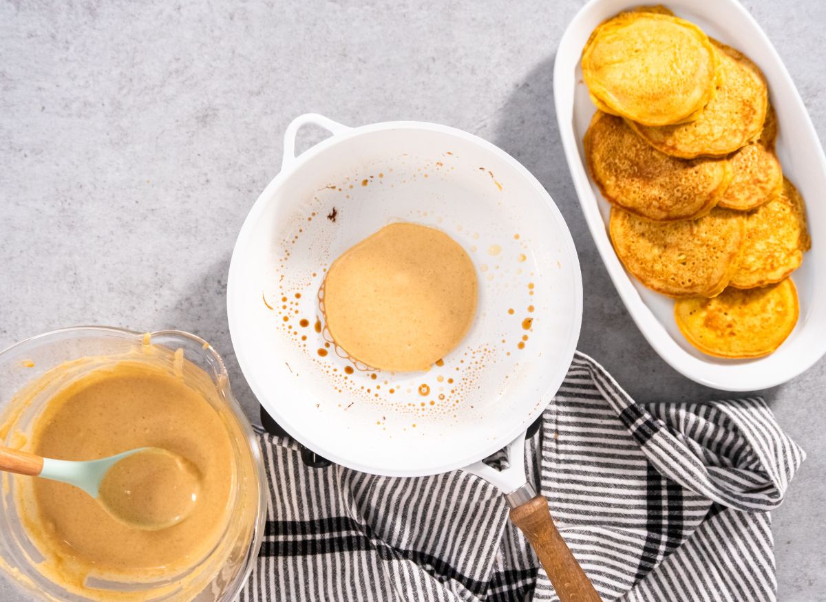 - Toma porciones de masa con una cuchara y dales forma redonda y aplanada para formar los panqueques.