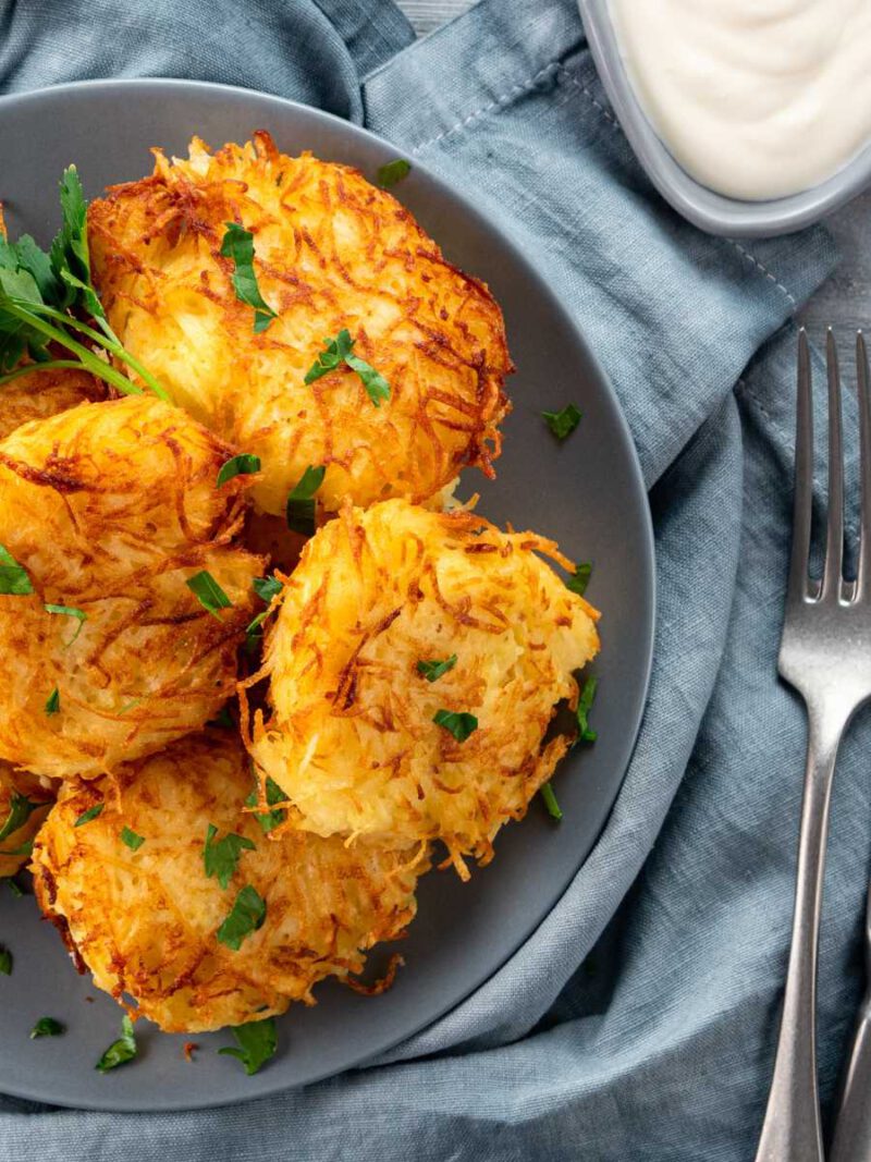 - Las tortitas sobrantes se pueden guardar en un recipiente hermético en el frigorífico hasta 3 días. Para recalentarlas, puedes usar la freidora de aire o en una sartén caliente para que recuperen su textura crujiente.