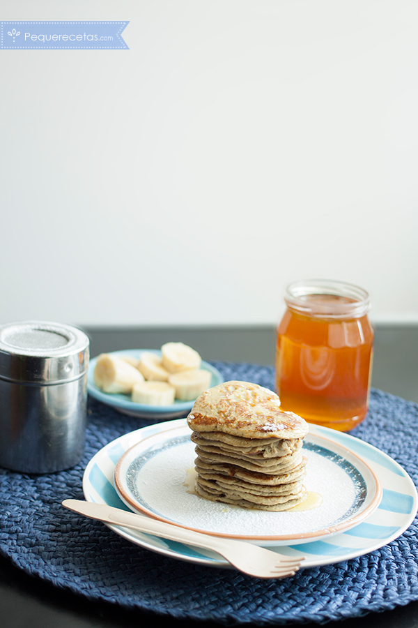 ¿Qué te han parecido estas tortitas sin gluten? Si quieres probar otras recetas con plátano te recomendamos el bizcocho de plátano, el conocido pan de plátano o la tarta de plátano, las saludables galletas de avena y plátano, un delicioso batido de plátano, o estos ricos buñuelos de plátano. Y en verano no te olvides de probar este helado de plátano ¡delicioso y fácil!
