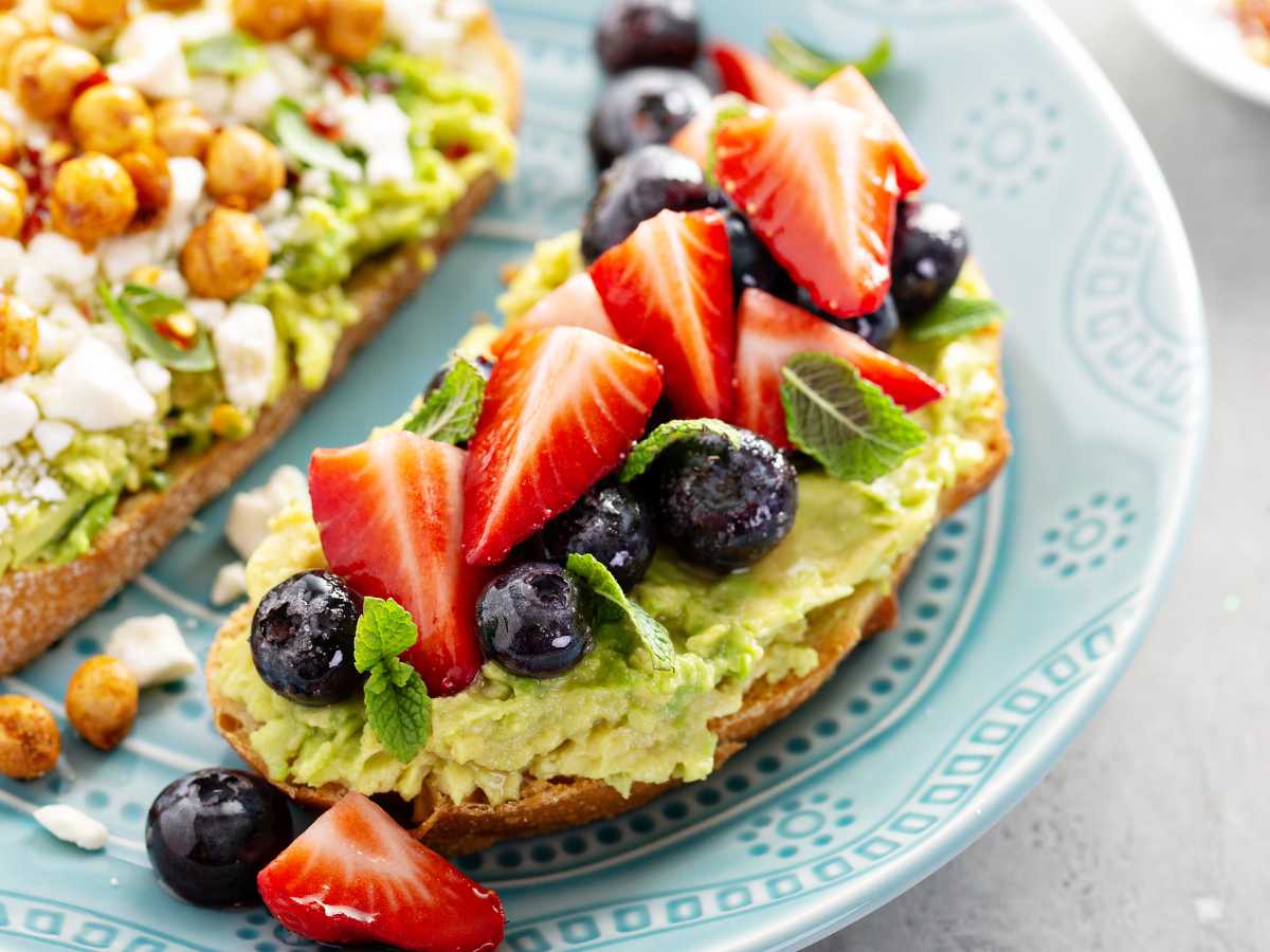 Tostadas de aguacate con frutas
