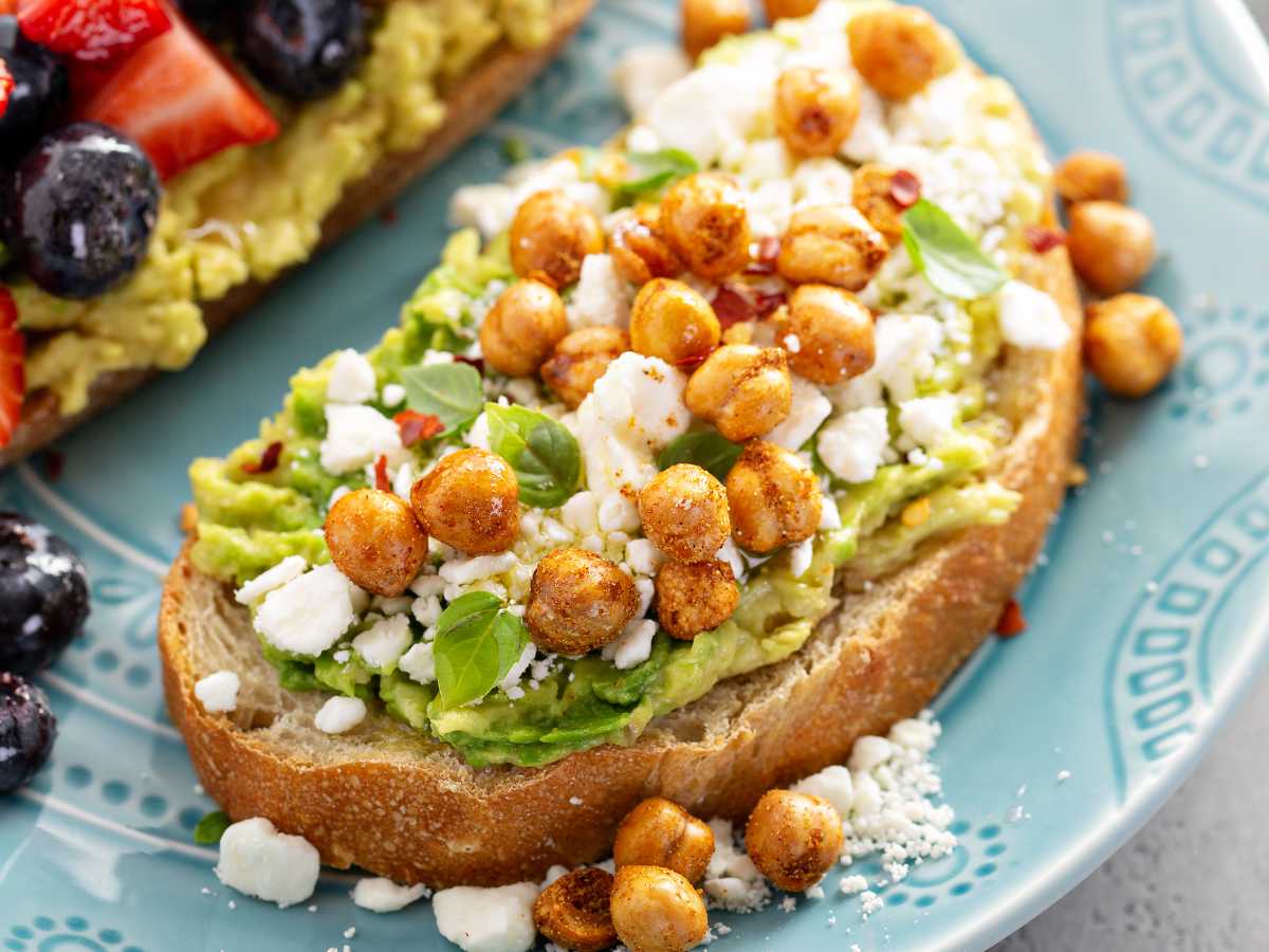 Tostadas de aguacate con garbanzos y queso feta