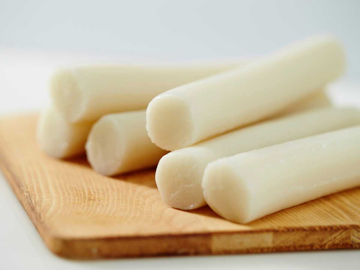 Se utilizan los tteok cilíndricos y alargados, llamados garaetteok, específicamente pensados para este plato. Son distintos de los tteok dulces o de formas planas usados en postres.