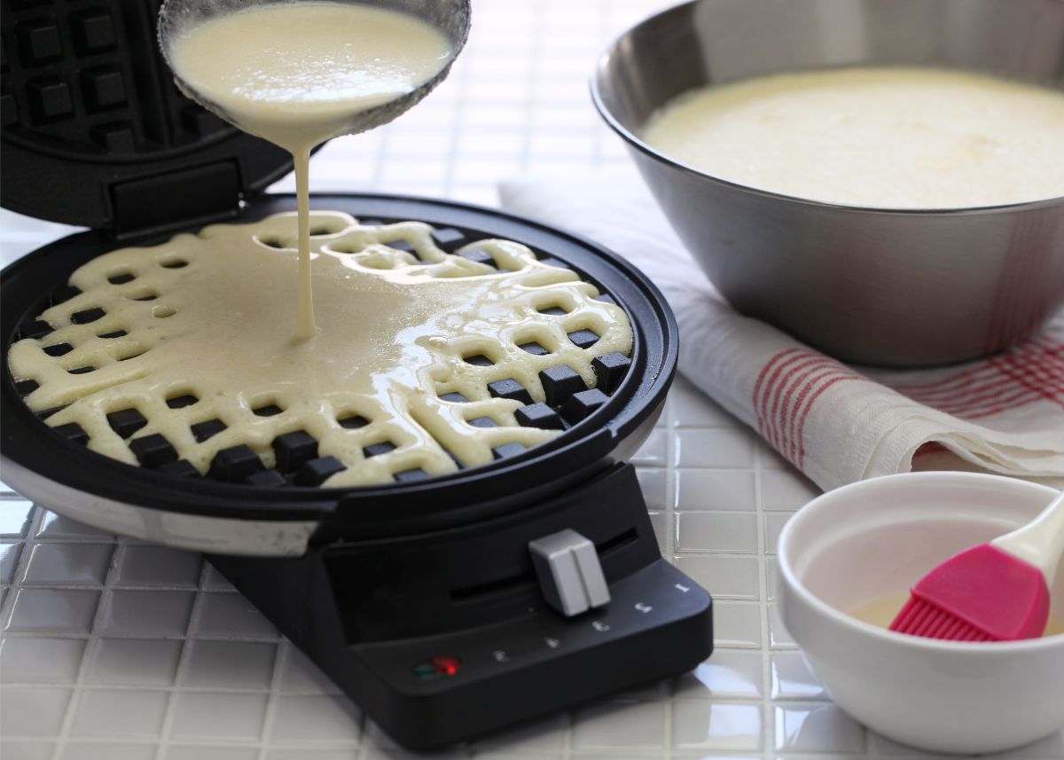 - Pincela con mantequilla derretida o aceite la máquina para hacer waffles.
