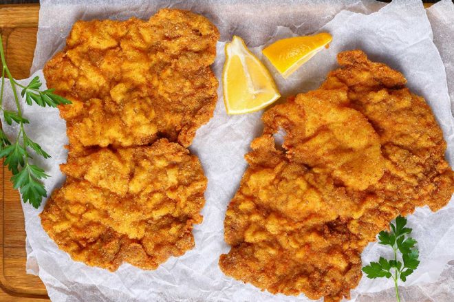 Seguro que sabéis que el filete empanado tiene diferentes nombres, y pequeñísimas diferencias en la receta, según el lugar donde se lo prepare: milanesas en varios países latinoamericanos, cotoletta alla milanese en Italia, nuestro famoso y delicioso cachopo asturiano… pues bien, la receta de Wiener Schnitzel tiene pocas diferencias con todas las anteriores, pero sin duda tienen una cosa en común: para comer un filete empanado crujiente y nada graso, tierno y jugoso, hay que tener en cuenta algunos trucos, que por supuesto os vamos a contar.