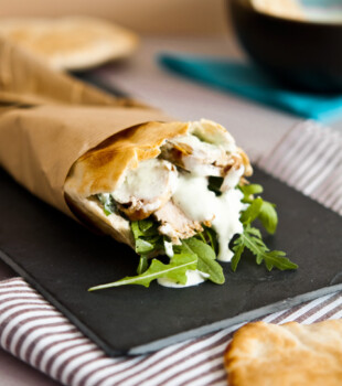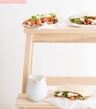 Ingredientes: Pan pita; falafel (hecho de garbanzos, ajo, cebolla, comino, cilantro, perejil); tomate picado; cebolla picada; perejil fresco picado; tahini o salsa de yogur; sal.