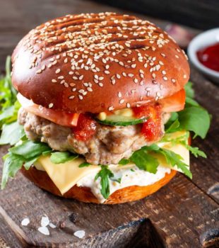 Pasos: Primero, sazona la pechuga de pollo con sal y pimienta, y cocínala a la parrilla hasta que esté bien dorada y jugosa. Corta el pollo en tiras. Abre el pan ciabatta y coloca una capa de lechuga romana en la base. Añade las tiras de pollo a la parrilla encima y rocía con aderezo César. Espolvorea queso parmesano rallado para darle un toque extra de sabor. Cierra el bocadillo y disfruta de esta versión portátil de la ensalada César.