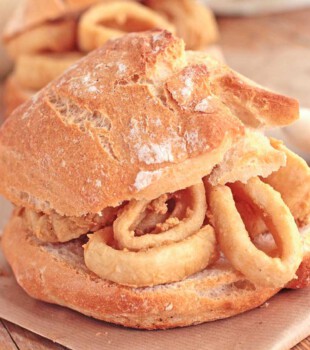El bocadillo de calamares es todo un clásico de la gastronomía madrileña. Sencillo pero lleno de sabor, este bocadillo se ha convertido en un símbolo culinario de Madrid. Consiste en calamares frescos rebozados y fritos, servidos dentro de un pan crujiente, y es ideal para disfrutar como almuerzo mientras paseas por la ciudad.