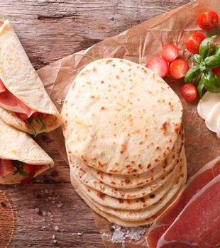 Ingredientes: Pan ciabatta; mozzarella fresca en rodajas; tomate maduro en rodajas; hojas frescas de albahaca; aceite de oliva virgen extra; sal; pimienta negra recién molida.