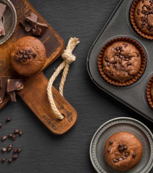 Muffins o magdalenas de harina de maíz con chips de chocolate
