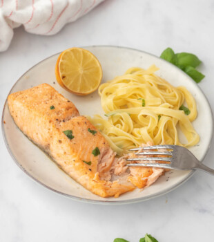 El salmón se cocina rápido. Si te pasas, se queda seco. Para que quede jugoso, lo mejor es hacerlo a fuego medio-alto solo unos minutos por cada lado (en plancha) o al horno no más de 15-18 minutos según el grosor.