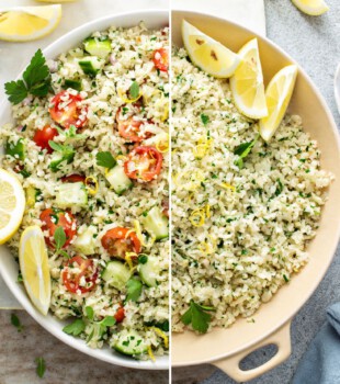 Ensalada de arroz de coliflor con garbanzos y queso feta
