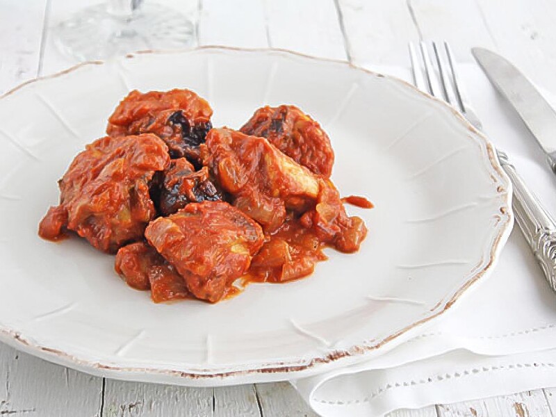 Pollo en salsa de tomate con ciruelas