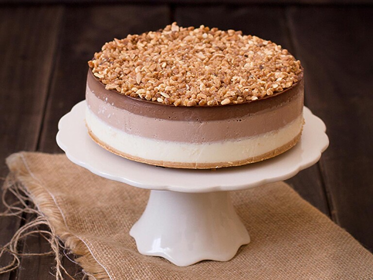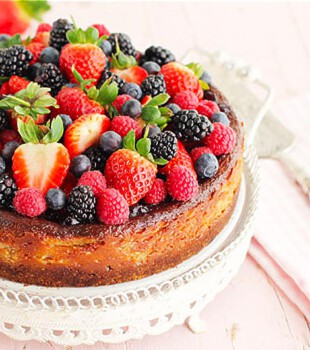 Tarta de queso y chocolate blanco al horno con frutos rojos
