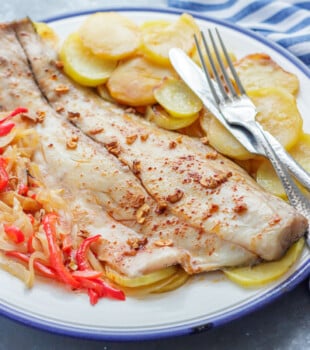 Con verduras suaves: calabacín, espárragos, patatas cocidas o pimientos al horno son acompañamientos ideales.
