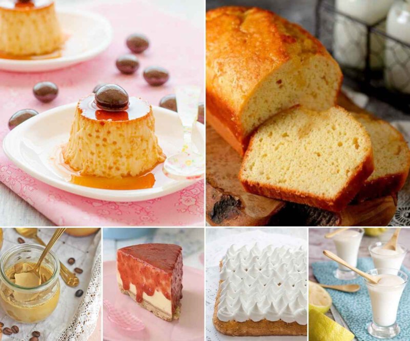 Algunas de las recetas con leche condensada más conocidas son los alfajores argentinos, el flan de leche condensada, la tarta tres leches, donde uno de los ingredientes básicos es precisamente la leche condensada, el bizcocho con leche condensada, las bolitas de coco y leche condensada, y la tarta de queso con leche condensada.