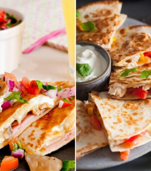 - Quesadillas: Si buscas algo rápido, las quesadillas son una opción perfecta. Rellena las tortillas de maíz con queso y cualquier otro ingrediente que tengas a mano (jamón, champiñones, pollo) y dóralas en la sartén hasta que el queso se derrita. Una solución fácil y sabrosa.