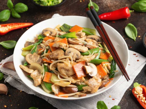 Fideos de arroz con pollo y verduras (receta fácil sin gluten)