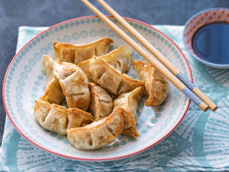 Gyozas de pollo y verduras fritas