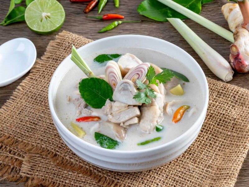 Sopa Tom Kha Gai de pollo con leche de coco