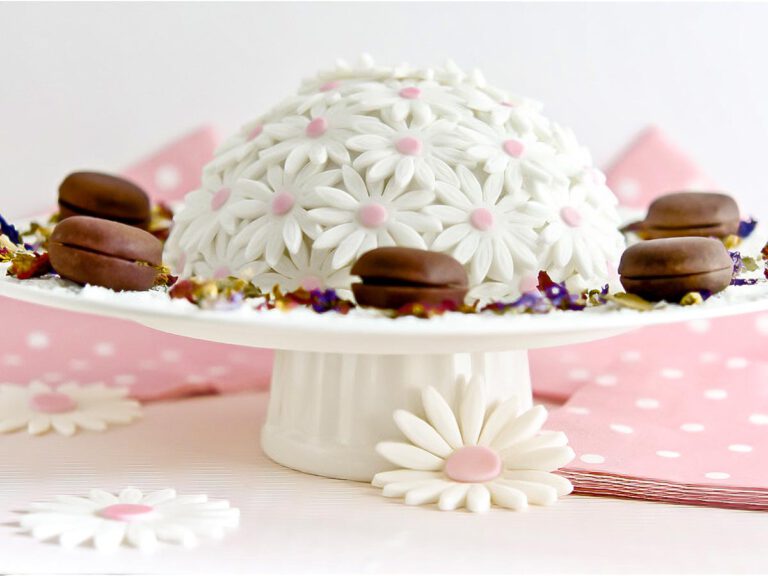 Tarta de flores con fondant y bizcocho relleno de Nocilla